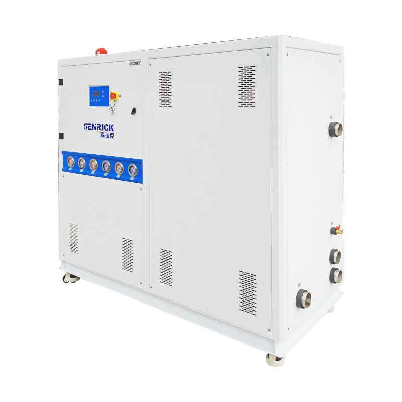 工業(yè)冷水機(jī)是一種通過蒸汽壓縮或吸收式循環(huán)達(dá)到制冷效果的機(jī)器。工業(yè)冷水機(jī)的工作原理是:先向機(jī)內(nèi)水箱注入量的水,通過冷水機(jī)制冷系統(tǒng)將水冷卻,然后再由水泵將低溫冷卻水送入需冷卻的設(shè)備,冷水機(jī)冷卻水將熱量帶走后溫度升高再回流到水箱,從而達(dá)到冷卻的作用。冷卻水的溫度可根據(jù)要求自動(dòng)調(diào)節(jié)。